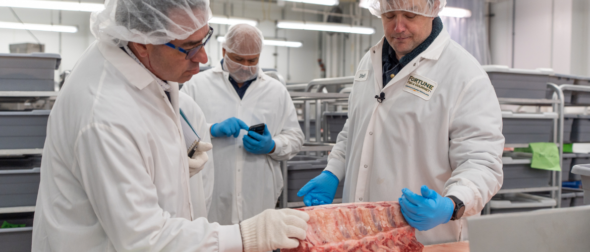 The team toured the entire facility, watched beef breakdowns, inhaled the aromas of the dry-aging room, and learned everything about ground beef from the grind master himself. They gained an appreciation for how thoughtful attention to detail makes the difference when portioning and grinding meat. Then everyone enjoyed burgers fresh off the line for lunch.